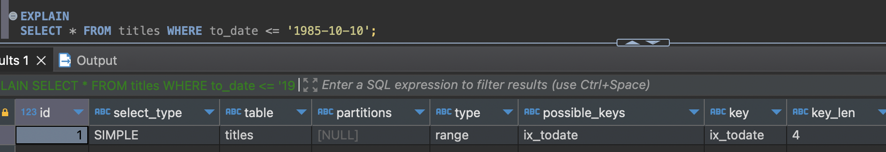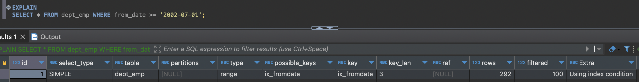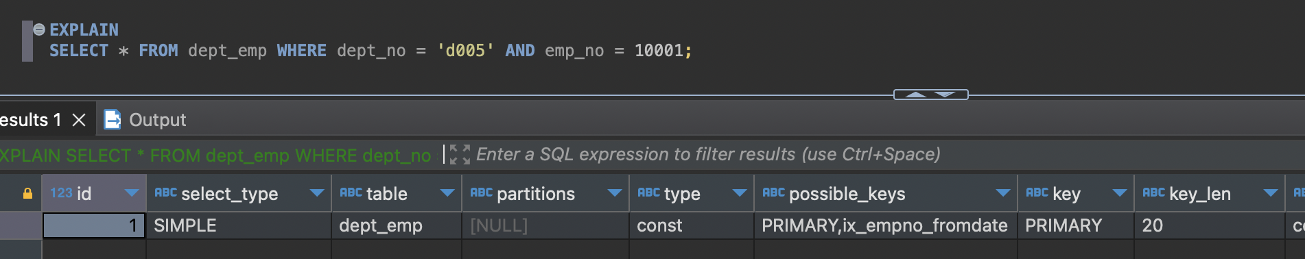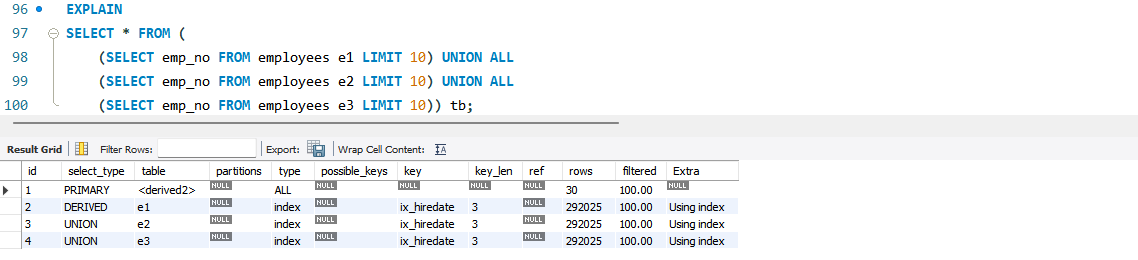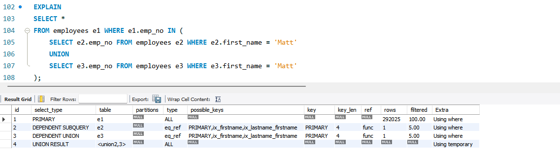 - Using union(...): 각 인덱스를 사용할 수 있는 조건이 OR로 연결된 경우 각 처리 결과에서 합집합을 추출해내는 작업을 수행했다는 의미다.