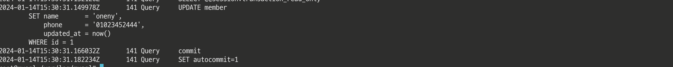 사용자 정보를 수정하는 경우에는 당연히 readOnly가 아니기 때문에 소스 서버에서 쿼리가 실행됐다.