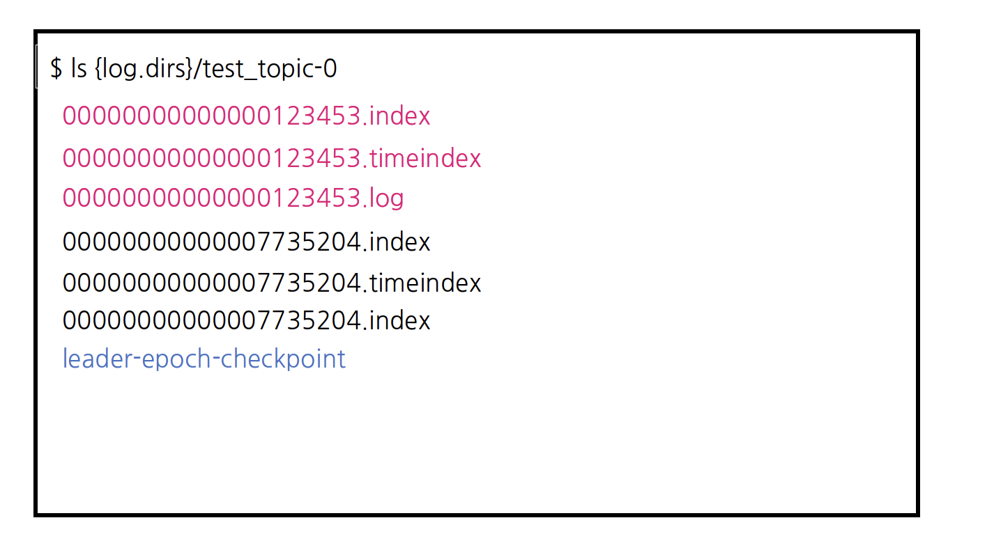 - Leader Epoch Checkpoint File(leader-epoch-checkpoint) - Leader Epoch과 관련 Offset 정보를 저장