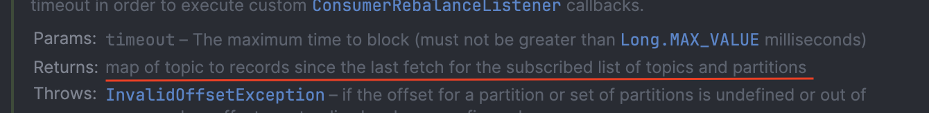 ConsumerRecords<String, String> records = consumer.poll(timeout);