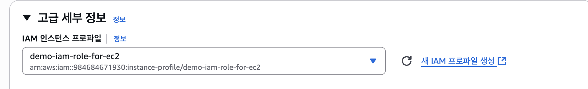 - IAMReadOnlyAccess 권한을 가진 demo-iam-role-for-ec2 역할 선택한다.