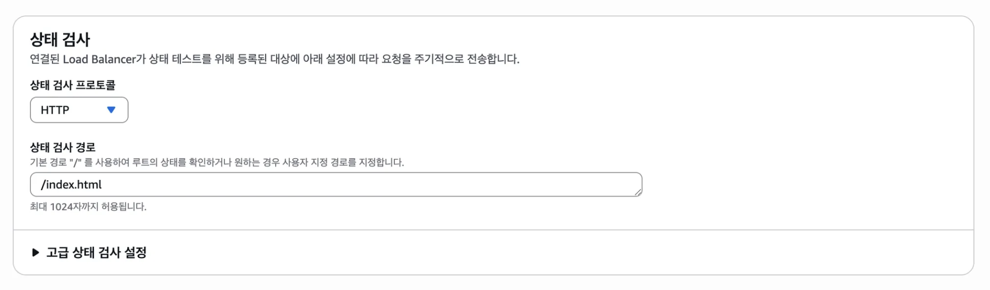 - 대상 그룹에서 상태 확인할 수 있는 경로를 지정한다.