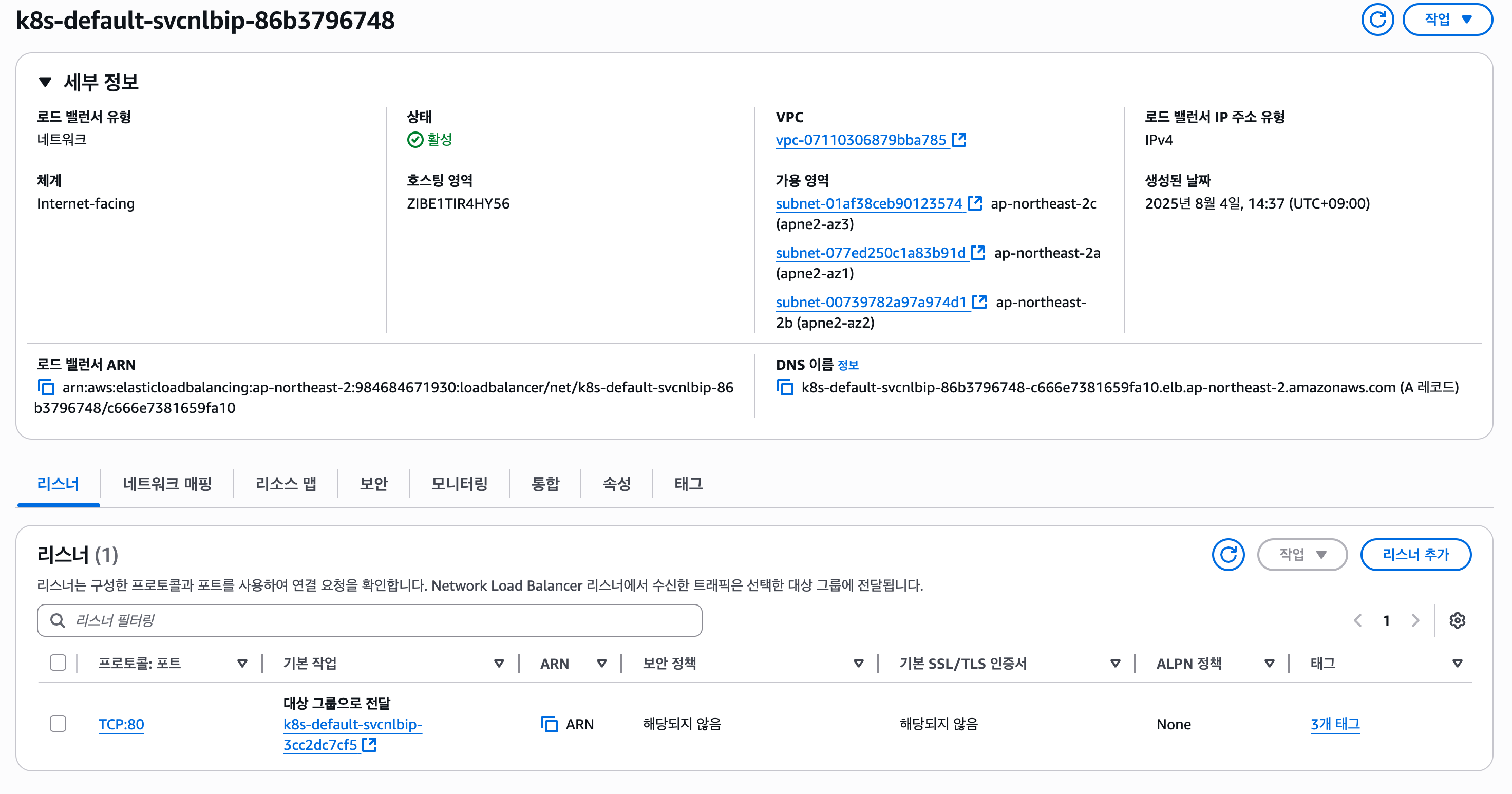 # NLB에 연결된 타겟그룹 바인딩 정보 확인