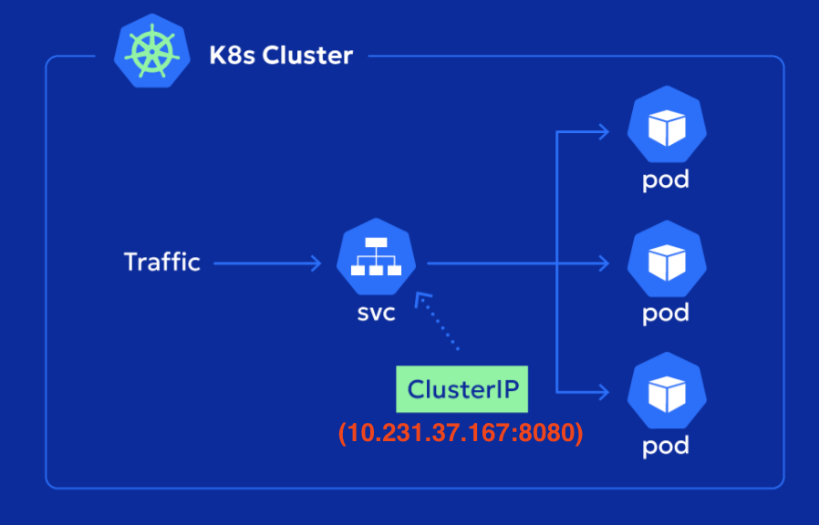 ClusterIP로 트래픽이 전달되는 방식은 각 노드에 상주하는 kube-proxy가 핵심 역할을 한다. 클라이언트가 서비스의 ClusterIP로 요청을 보내면, kube-proxy는 노드의 iptables에 설정된 분산 규칙을 통해 요청을 서비스에 연결된 파드 중 하나로 무작위로 전달한다. 이 과정을 통해 로드 밸런싱이 자동으로 수행되며, 파드가 어느 노드에 위치해 있는지와 관계없이 요청은 적절한 파드로 분산된다.