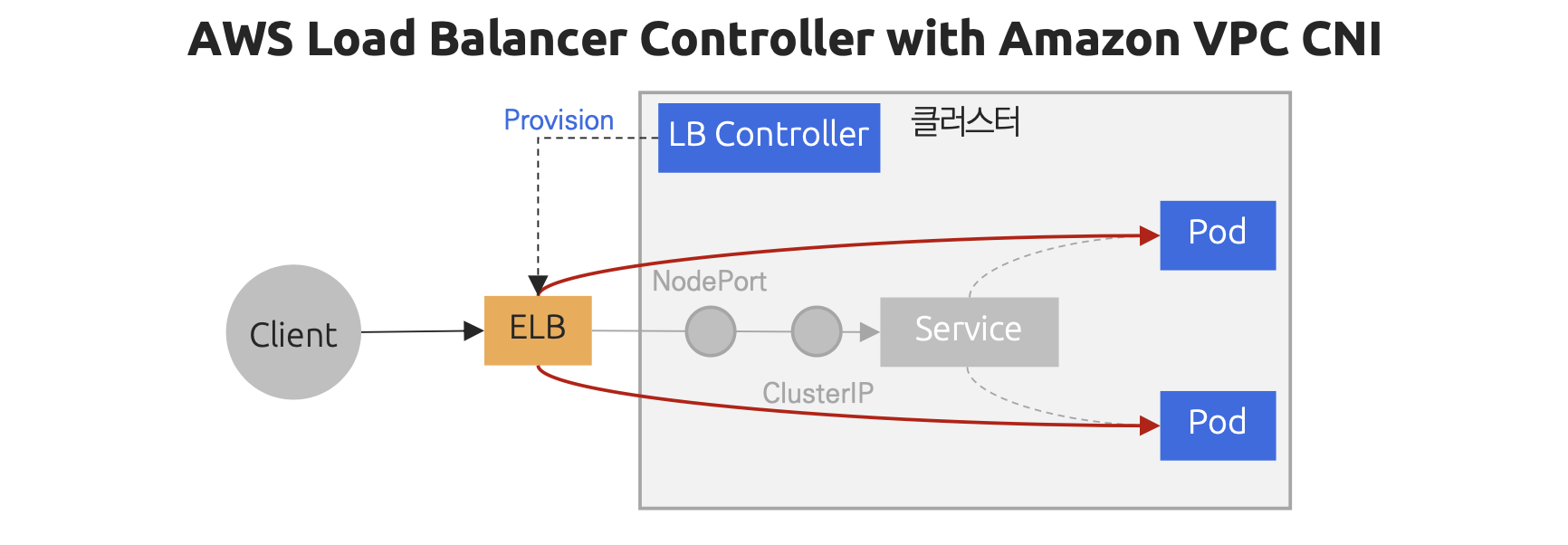 하지만, AWS에서는 이제 CLB보다는 ALB와 NLB로 목적에 맞게 구분해서 사용하는 것을 권장하고, 이를 위해서는 AWS Load Balancer Controller를 설치하여 Kubernetes 리소스(Service, Ingress 등)와 연동해 자동으로 ALB 또는 LNB를 프로비저닝하고 관리할 수 있도록 구성해야 한다.