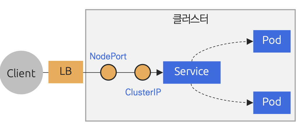 - spec.ports[].nodePort: 모든 쿠버네티스 노드 IP 주소에서 수신할 포트 번호