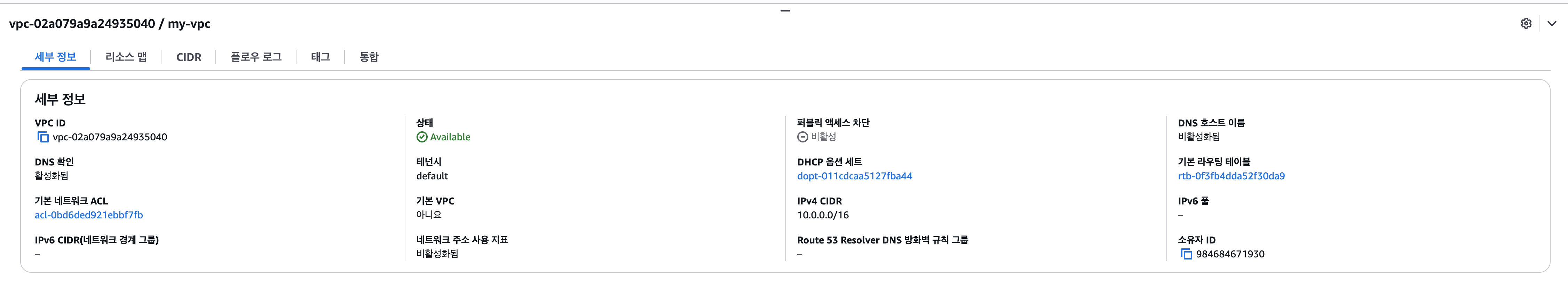 cidr_block = var.cidr_block # VPC의 CIDR 블록을 변수로 설정하여 유연성 제공