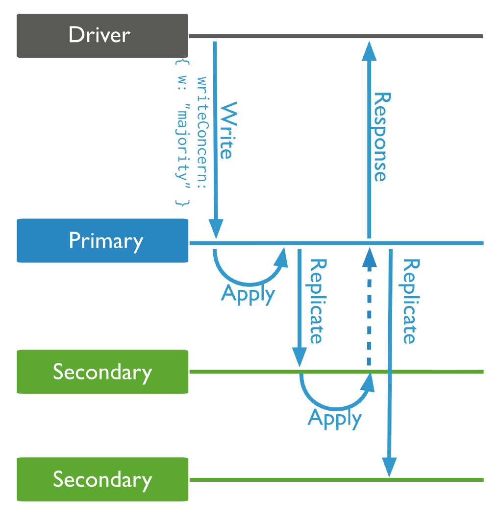 // -> Primary 노드까지 진행이 된다면 응답을 받는다. -> 세컨더리 노드에는 없을수도 있다.