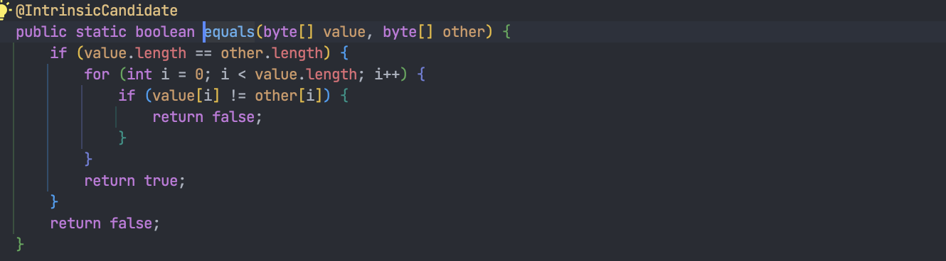 equals를 사용하는 메서드를 들여보면 위 코드처럼 되어있다. equals 메서드는 모든 객체의 부모 클래스인 Object에 정의되어 있는 메서드이다. String 클래스는 위와 같이 equals 메서드를 오버라이딩하여 인자로 전달된 String을 주소값이 아닌 데이터값으로 비교한다. 따라서 String을 어떻게 생성하느냐에 따라 결과가 달라지지 않고 정확한 비교를 할 수 있다.