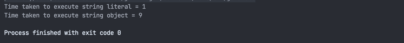 System.out.println("Time taken to execute" + " string literal = " + totalTime1);