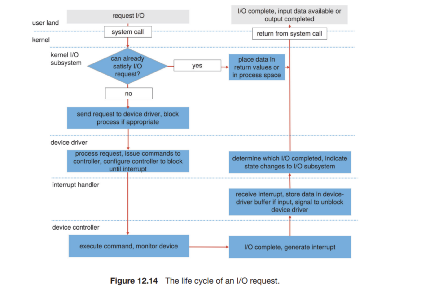 컴퓨터는 크게 2가지 역할을 수행한다고 볼 수 있는데 하나는 연산(computing)이고, 하나는 I/O 즉, 입출력을 처리하는 것이다. 컴퓨터에서 운영체제는 이러한 입출력에 대한 수행과 물리적인 입출력 장치(하드웨어)를 관리하고 컨트롤해주고 있다. 이러한 I/O 요청이 처리되는 과정을 하나씩 알아보자.