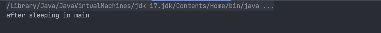 먼저 여기서 가장 핵심이 되는 코드는 boolean isAdd = true; 이다. run() 메서드를 살펴보면 isAdd가 true이면 count++;를 계속 실행하고 false일 때 빠져나와 count를 출력한다. main() 메서드에서 VolatileTest 객체를 만들어 start()를 실행하고 1초 쉬도록 만든 후 메시지("after sleeping in main")을 출력하고, t.isAdd = flase;를 실행하면 t 스레드는 while 문 루프를 빠져나와 count를 출력하도록 코드를 작성했다. 그러나 실제로 실행하면 위 코드는 아래처럼 while문을 빠져나오지 못한다. 즉, t.join(); 스레드가 끝나길 기다려도 끝나지 않는다.