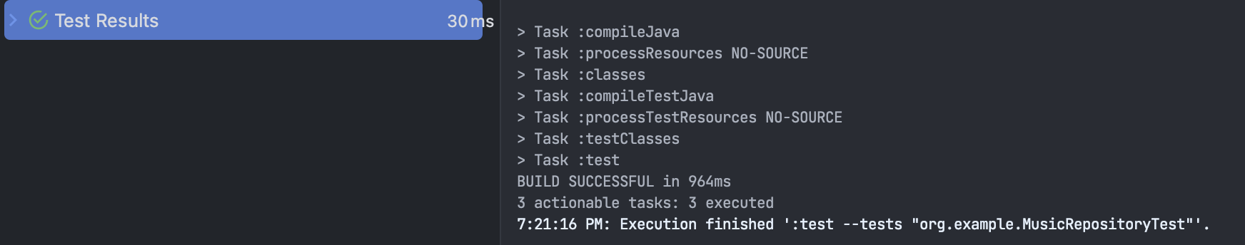 그리고 새로 만든 프로젝트에 @Inject 애노테이션과 ContainerService를 사용하여 필드 주입이 되는 것을 확인한 결과 테스트를 통과한 것을 확인할 수 있었다.