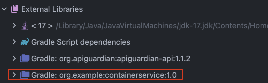 그리고 라이브러리를 사용하기 위해 다른 프로젝트를 생성하여 build.gradle에서 maven 로컬 저장소를 사용하도록 지정한다(mavenLocal()). 그리고 다시 라이브러리를 프로젝트에 사용할 수 있도록 돌리면 라이브러리가 들어간 것을 확인할 수 있다.