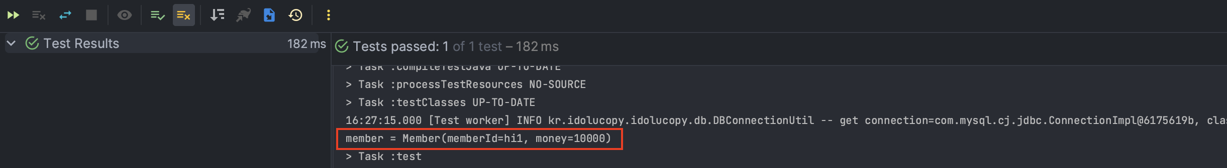 getConnection()를 사용하여 이전에 만들어둔 DBConnectionUtil을 통해서 커넥션을 획득한다.