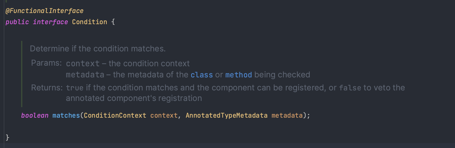 public boolean matches(ConditionContext context, AnnotatedTypeMetadata metadata) {