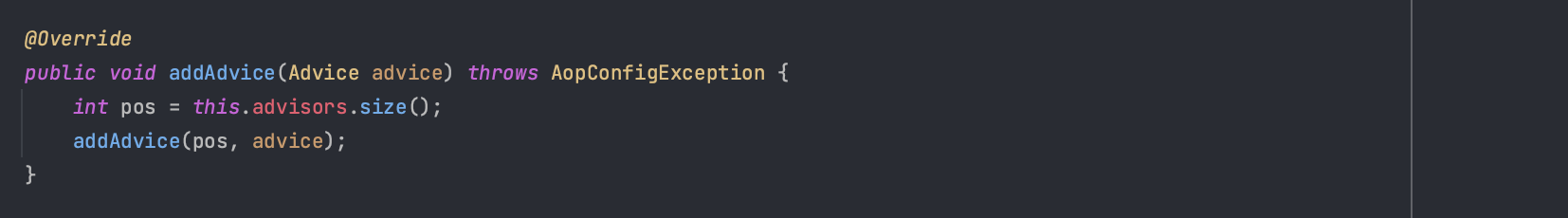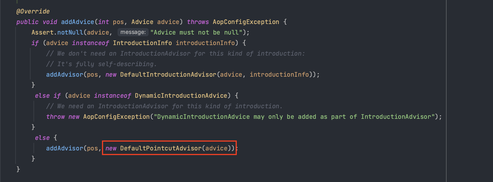 DefaultPointcutAdvisor advisor2 = new DefaultPointcutAdvisor(Pointcut.TRUE, new Advice2());