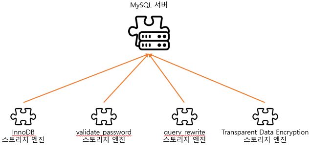 MySQL의 독특한 구조 중 대표적인 것이 바로 플러그인 모델이다. 플러그인해서 사용할 수 있는 것이 스토리지 엔진만 있는 것은 아니다. 전문 검색 엔진을 위한 검색어 파서(인덱싱할 키워드를 분리해내는 작업)도 플러그인 형태로 개발해서 사용할 수 있으며, 사용자의 인증을 위한 Native Authentication과 Caching SHA-2 Authentication 등도 모두 플러그인으로 구현되어 제공된다.