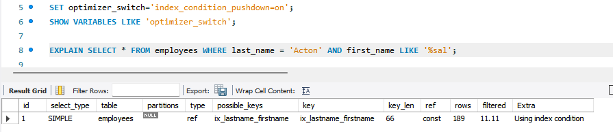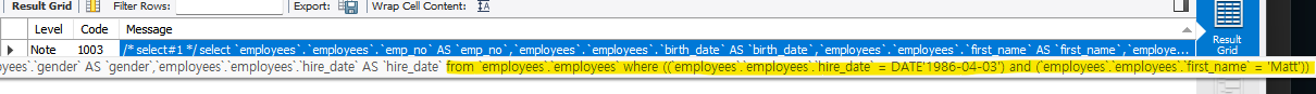 mysql> SELECT /** SKIP_SCAN(employees ix_gender_birthdate)*/ COUNT(*) FROM employees