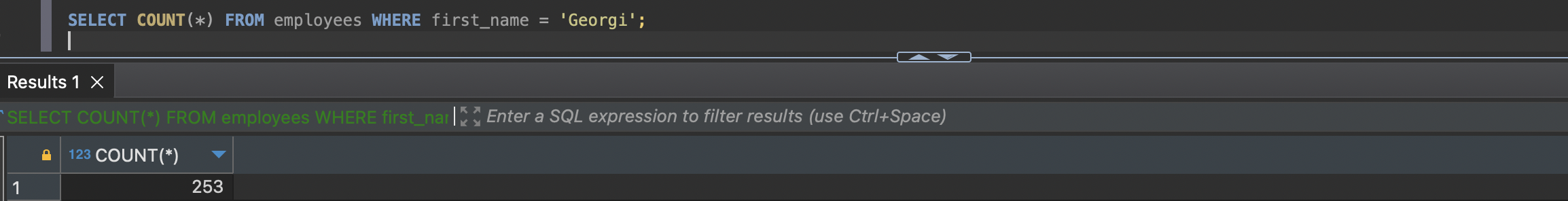mysql> SELECT /** NO_SKIP_SCAN(employees)*/ COUNT(*) FROM employees
