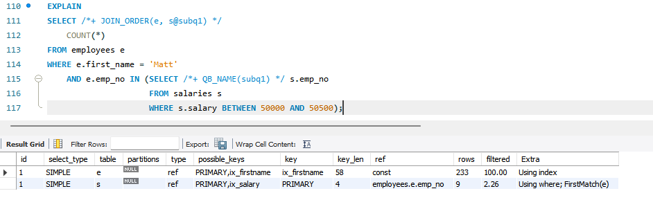 서브쿼리의 세미 조인최적화(DUPSWEEDOUT, FIRSTMATCH, LOOSESCAN, MATERIALIZATION) 전략제어 | 쿼리 블록 | |||||